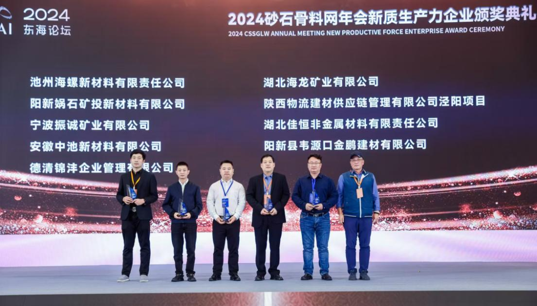 近日,2024年砂石骨料網(wǎng)年會(huì)新質(zhì)生產(chǎn)力企業(yè)頒獎(jiǎng)典禮在浙江湖州圓滿落幕,集團(tuán)所屬中池公司榮獲“2024年砂石行業(yè)新質(zhì)生產(chǎn)力示范企業(yè)”稱號(hào)。