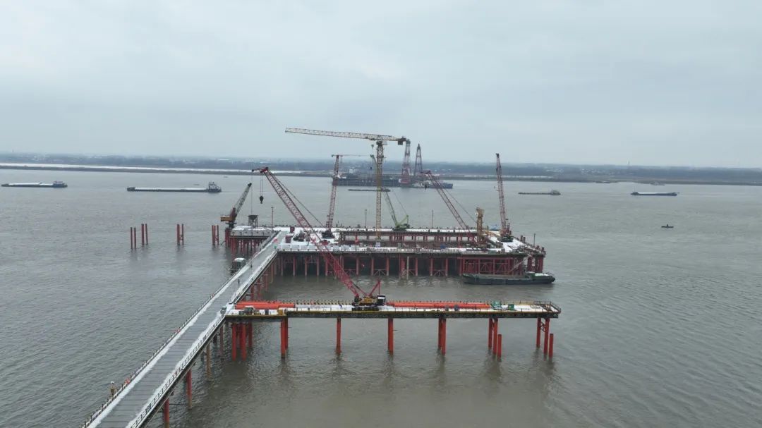 春節(jié)過后,池州港烏沙港區(qū)公用碼頭項目施工人員以時不我待的精神,鉚足干勁抓緊度、忙生產(chǎn),確保施工現(xiàn)場有序推進。截至目前,該項目水域部分碼頭平臺面層、兩座汽車引橋已全部澆筑完成,項目整體進度已完成約82%,碼頭工程主體結(jié)構(gòu)與房建工程主體結(jié)構(gòu)已全部施工完成,目前正在進行碼頭前沿鋼結(jié)構(gòu)安裝、房建工程裝飾裝修、鋼引橋吊裝、水電安裝等施工作業(yè)。同時碼頭陸域部分已完成招標工作,目前正在進行開工籌備工作。
