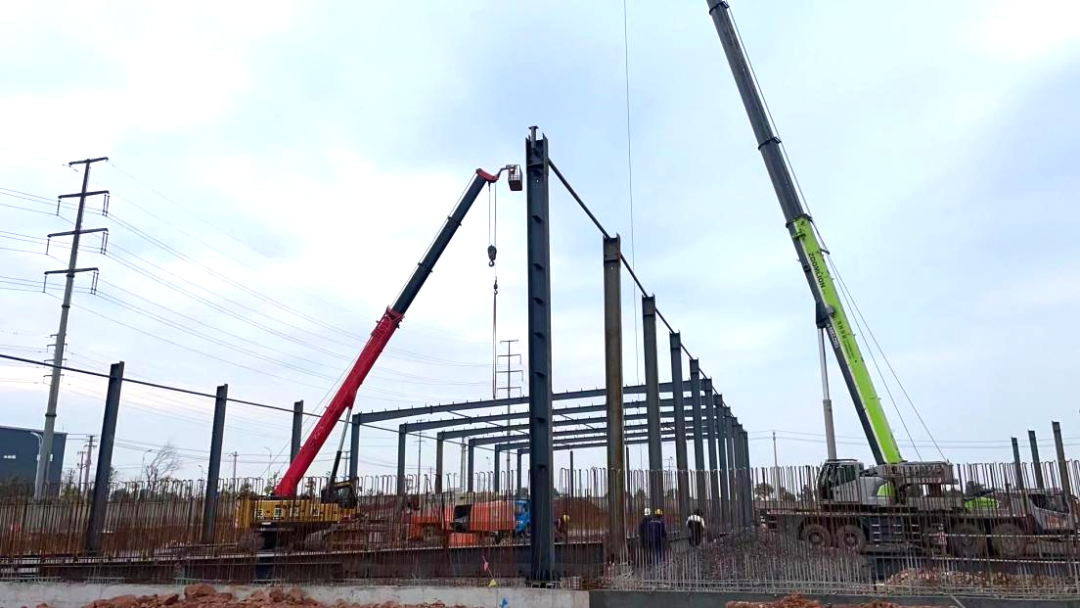公用型保稅倉庫項目于2023年12月初正式開工建設(shè),項目建成后主要提供各種有色金屬及大宗散貨礦產(chǎn)品的倉儲,報關(guān),報檢,報稅及物流配送等服務(wù)。復工以來,全體工作人員精神飽滿,拿出了開工即決戰(zhàn)、起步即沖刺的精神狀態(tài)投入到項目施工中。目前保稅倉庫鋼結(jié)構(gòu)鋼柱鋼梁已搭設(shè)完成,其附屬設(shè)施中制樣間、地磅棚、沉淀池基礎(chǔ)筏板等基礎(chǔ)設(shè)施已基本完成。商發(fā)公司將掛圖作戰(zhàn)、打表推進公用型保稅倉庫項目建設(shè),確保項目早建成、早投運、早見效。